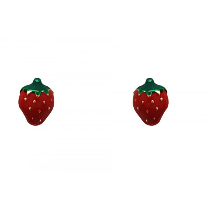 Boucles d'oreilles en or jaune 375/1000 en forme de fraises. Système vis (tige + poussette vis). Poids: 0.41g
