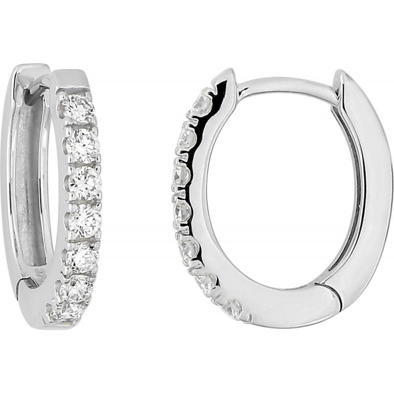 Boucles d'oreilles en or 375/1000 blanc créoles sertis de diamants de laboratoire (0.20ct). Système cliquet. Poids: 1.25g