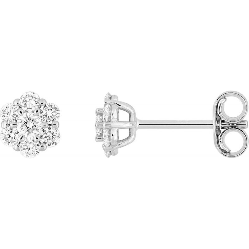Boucles d'oreilles en or 375/1000 blanc sertis de diamants de laboratoire (0.30ct). Système belge (tige + poussette). Poids: 0.55g