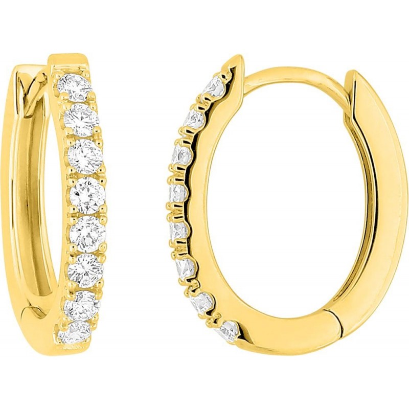 Boucles d'oreilles en or 375/1000 jaune créoles sertis de diamants de laboratoire (0.30ct). Système cliquet. Poids: 1.35g