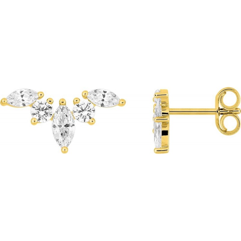 Boucles d'oreilles en or 375/1000 jaune sertis d'oxydes de zirconium. Système belge (tige + poussette). Poids: 0.80g