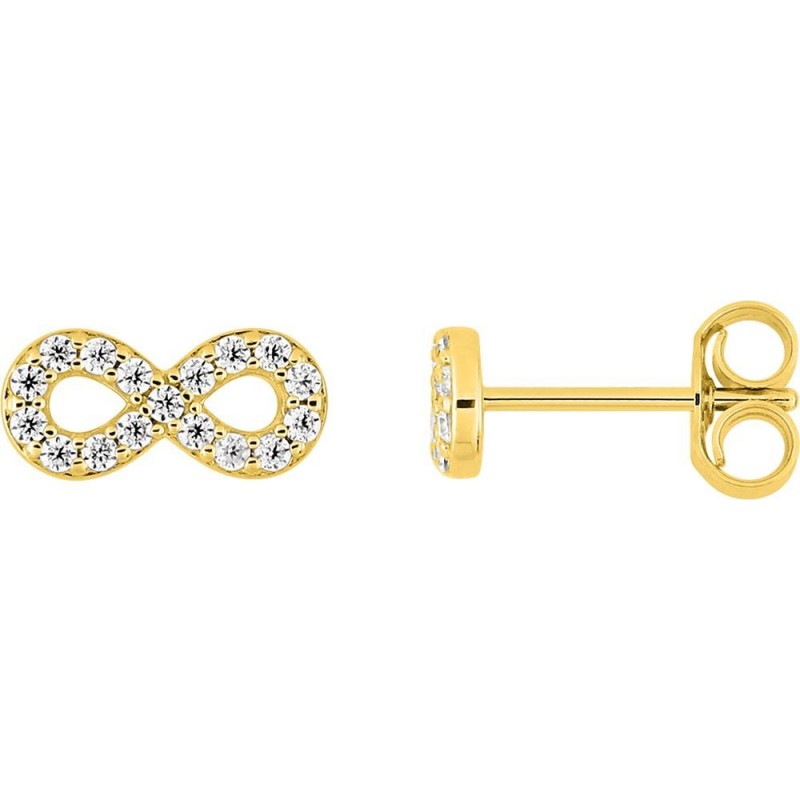 Boucles d'oreilles en or 375/1000 jaune sertis d'oxydes de zirconium. Système belge (tige + poussette). Poids: 0.55g