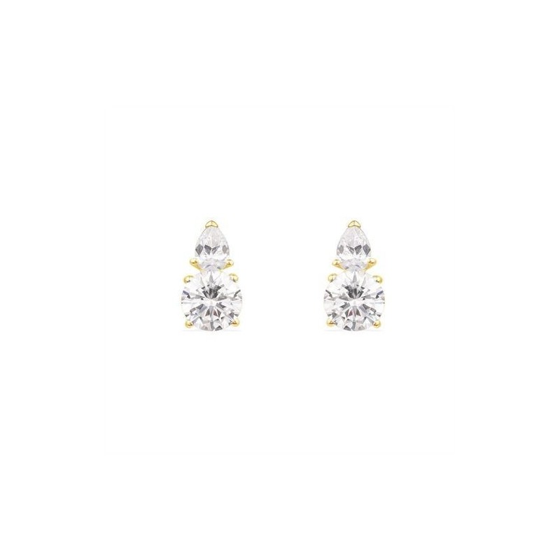 Boucles d'oreilles en or 375/1000 jaune sertis d'oxydes de zirconium. Système belge (tige + poussette). Poids: 0.93g