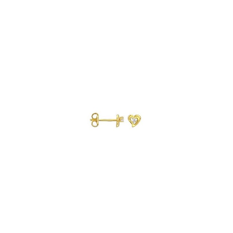 Boucles d'oreilles en or 375/1000 jaune en forme de coeur sertis d'oxydes de zirconium. Système belge (tige + poussette). Poids: 0.35g