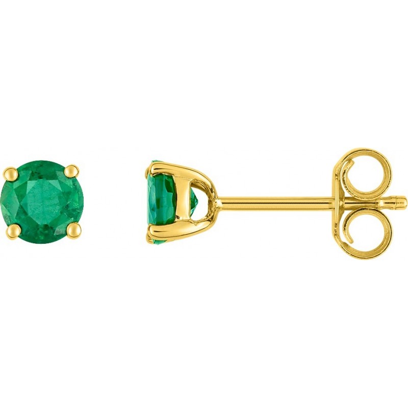 Boucles d'oreilles en or 750/1000 jaune serti d'emeraudes (0.55ct). Système belge (tige + poussette). Poids: 0.45g
