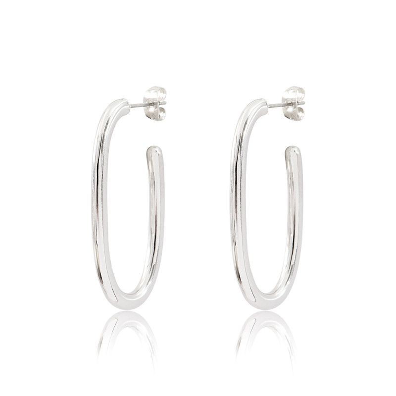 Boucles d'oreilles AGATHA en plaque argent rhodié créoles ovales. Système belge (tige + poussette).