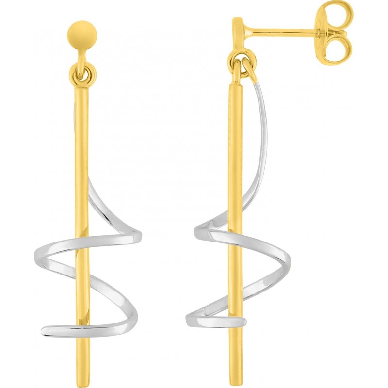 Boucles d'oreilles en plaque or pendantes bicolore. Système belge (tige + poussette).