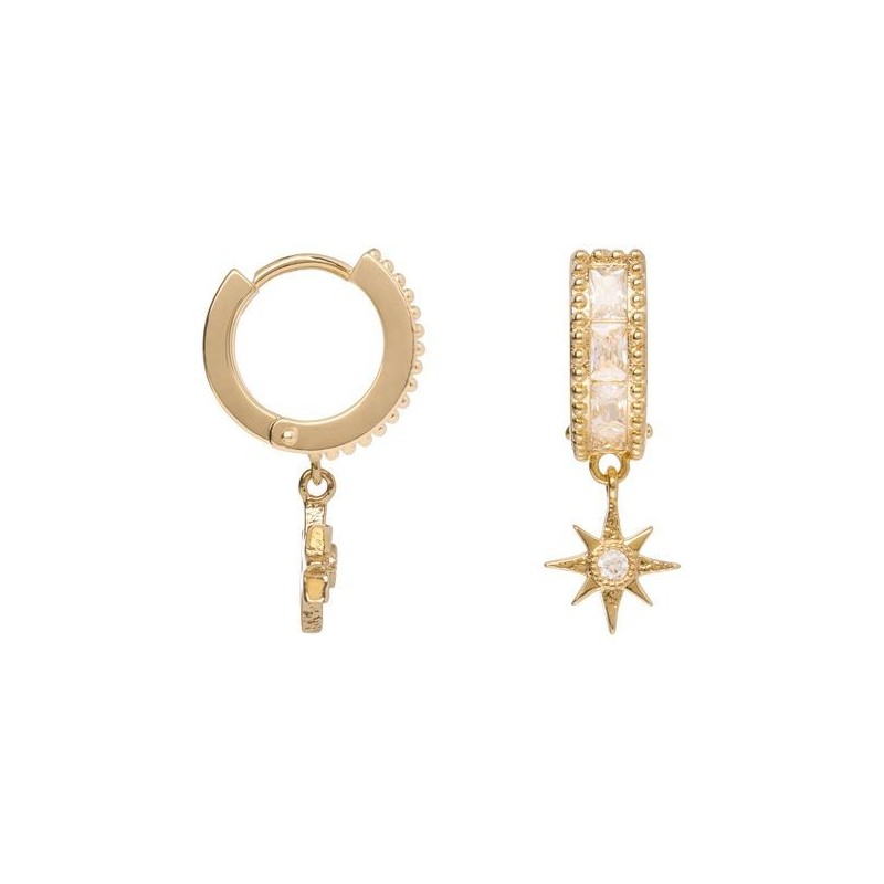 Boucles d'oreilles en plaque or sertis d'oxydes de zirconium. Système crochet.