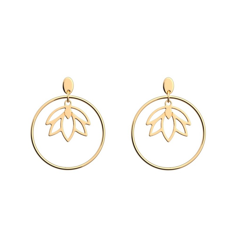 Boucles d'oreilles LES GEORGETTES "Lotus" en laiton doré, double rond 20mm. Système belge (tige + pousette).