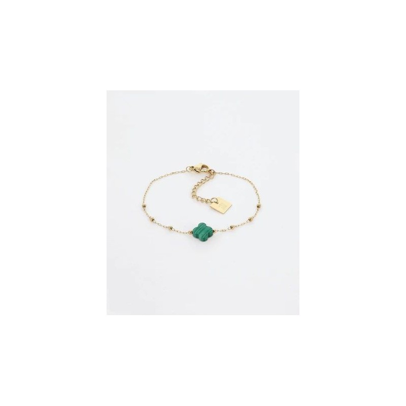 Bracelet ZAG BIJOUX en acier doré avec motif vert malachite. Fermoir mousqueton. Longueur ajustable de 15cm à 18cm.