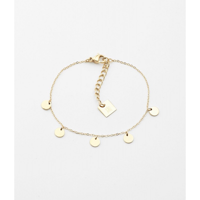 Bracelet ZAG BIJOUX en acier doré avec petits pastilles. Fermoir mousqueton. Longueur ajustable de 15cm à 18cm.