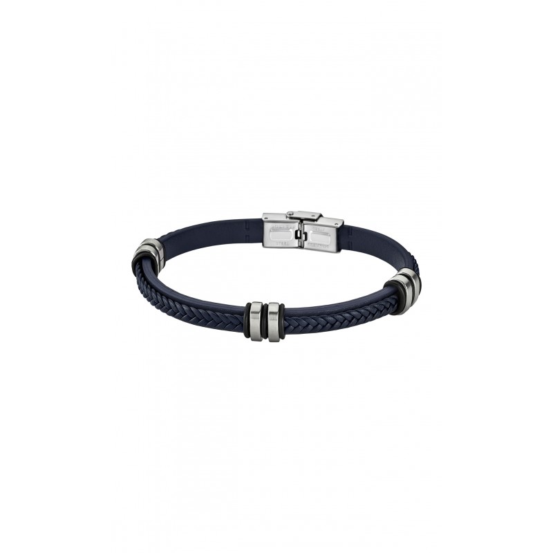 Bracelet LOTUS en cuir bleu et acier. Fermoir acier. Longueur 22cm.