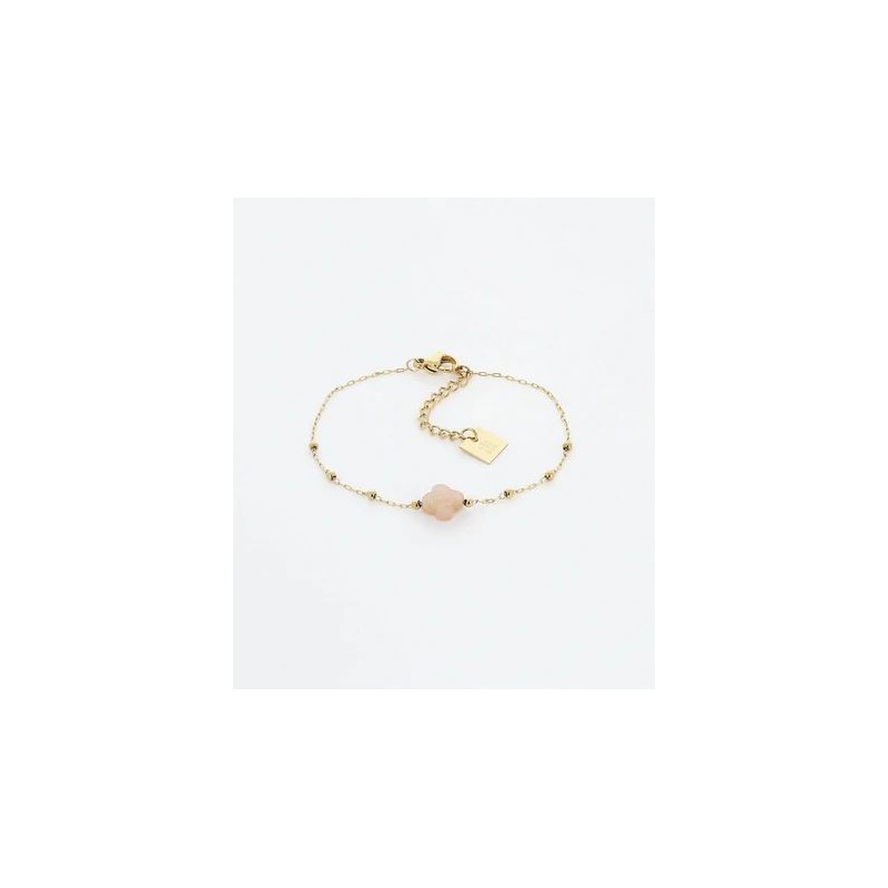 Bracelet ZAG BIJOUX en acier doré avec motif nude pierre de soleil. Fermoir mousqueton. Longueur ajustable de 15cm à 18cm.