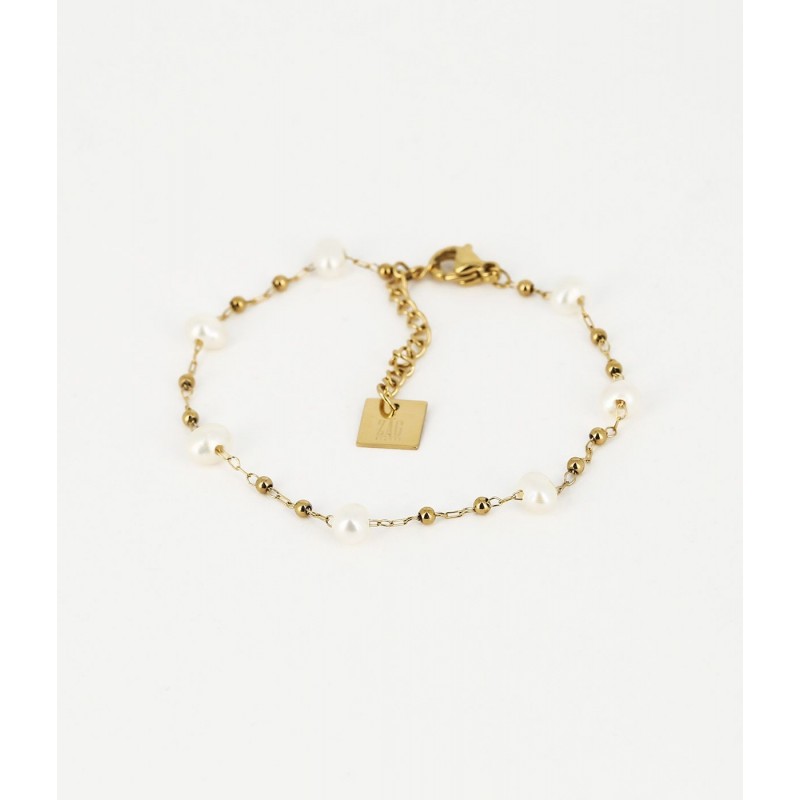 Bracelet ZAG BIJOUX en acier doré avec perles de culture. Fermoire mousqueton. Longueur ajustable de 15cm à 18cm.