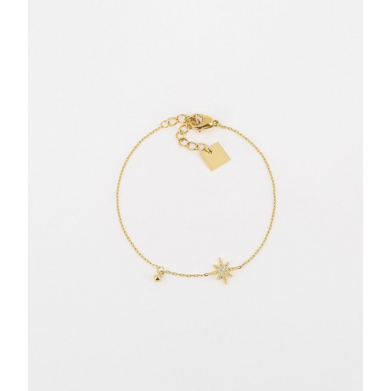 Bracelet ZAG BIJOUX en acier doré avec oxyde de zirconium. Fermoir mousqueton. Longueur ajustable de 15cm à 18cm.