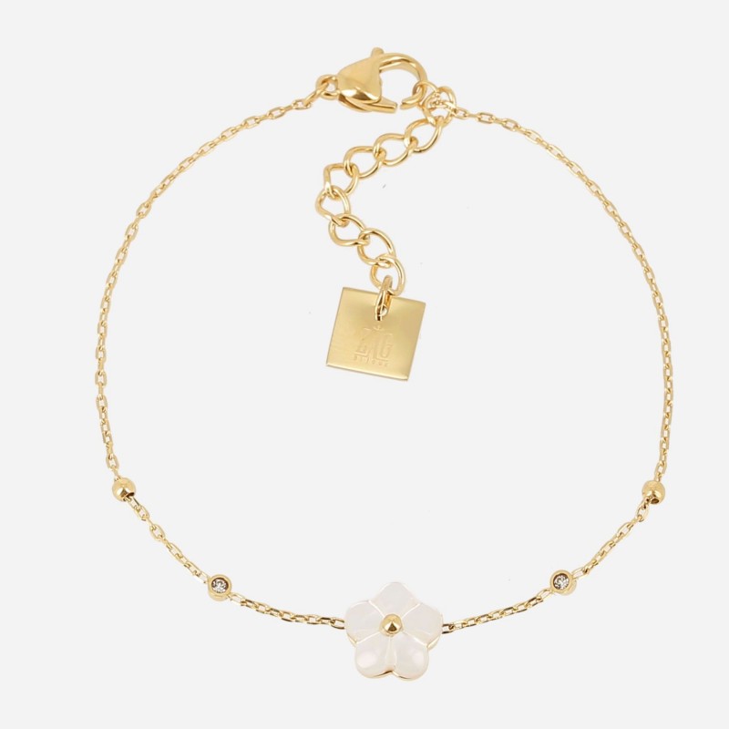 Bracelet ZAG BIJOUX en acier doré avec nacre. Fermoir mousqueton. Longueur ajustable de 15m à 18cm.