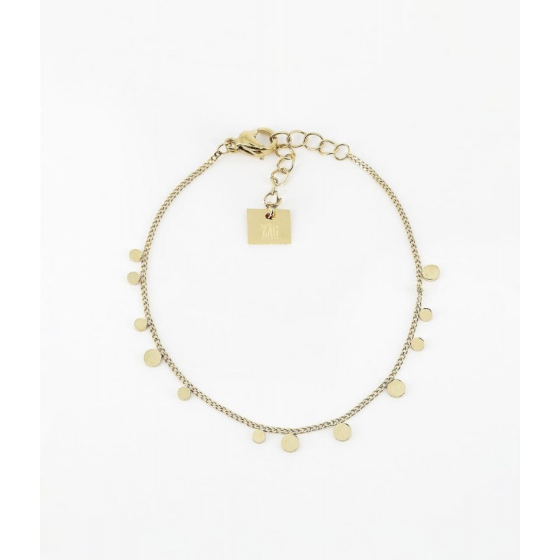 Bracelet ZAG BIJOUX en acier doré. Fermoir mousqueton. Longueur ajustable de 15m à 18cm.