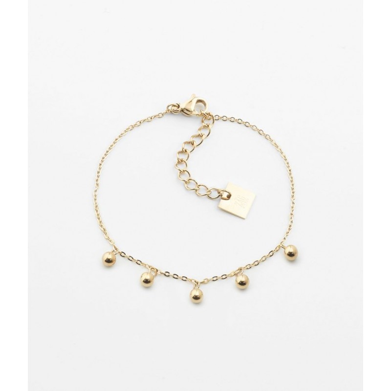 Bracelet ZAG BIJOUX en acier doré avec petites boules. Fermoir mousqueton. Longueur ajustable de 15cm à 18cm.