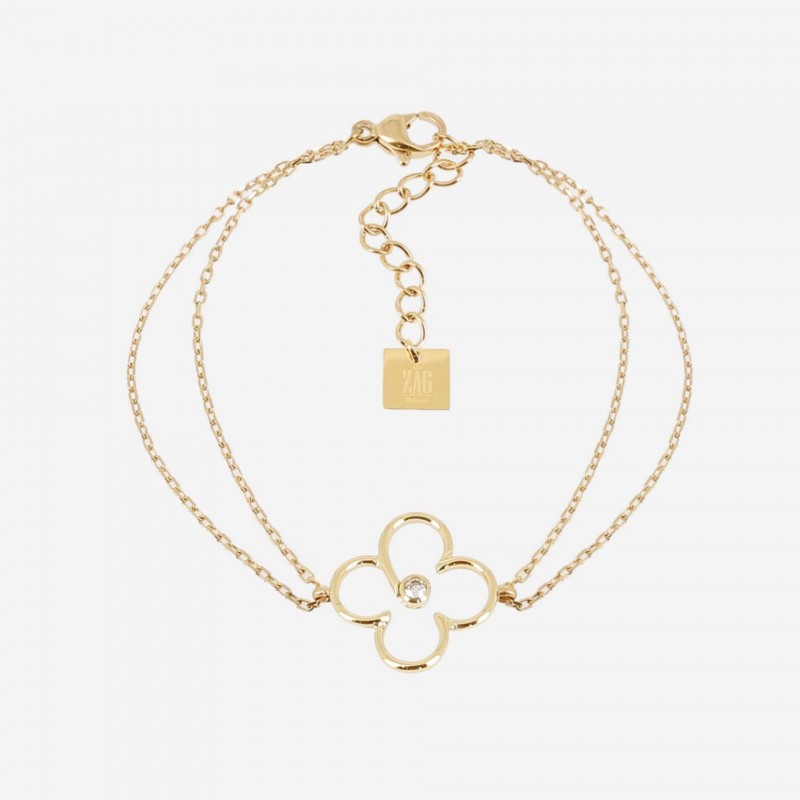 Bracelet ZAG BIJOUX en acier doré avec strass. Fermoir mousqueton. Longueur ajustable de 15cm à 18cm.