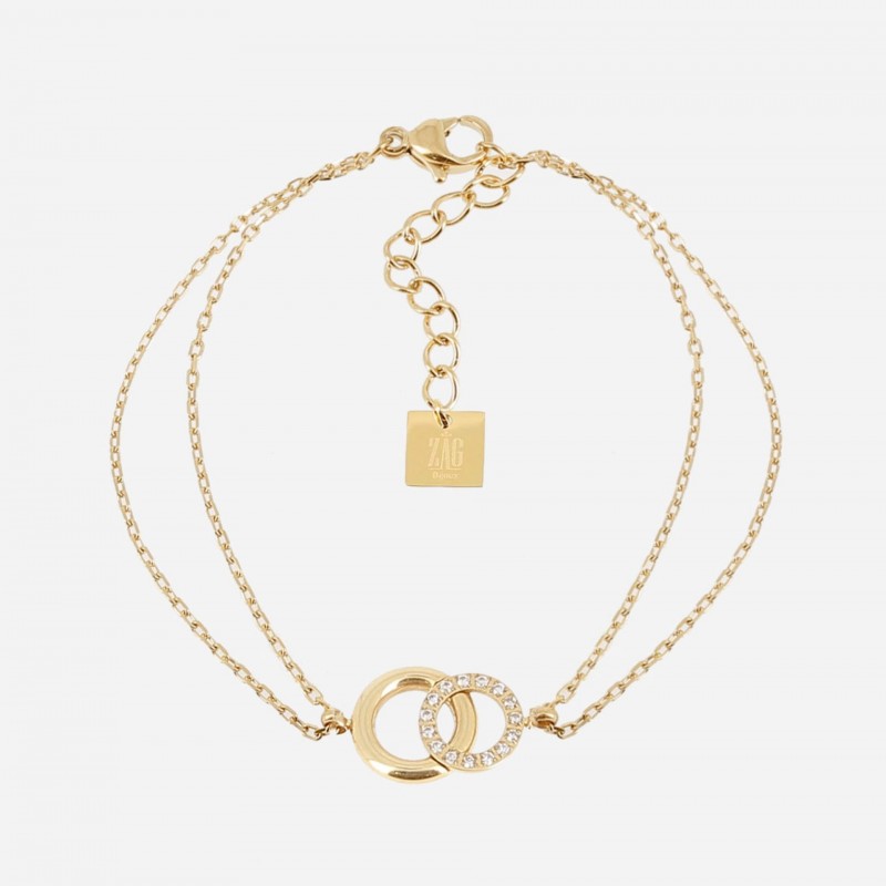 Bracelet ZAG BIJOUX en acier doré avec strass. Fermoir mousqueton. Longueur ajustable de 15cm à 18cm.