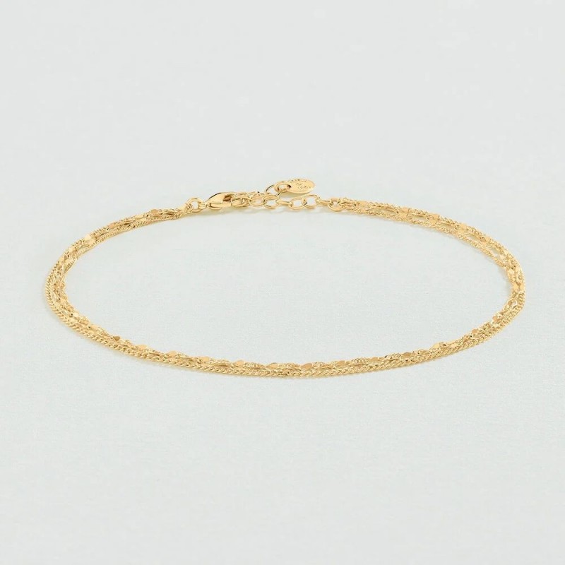 Bracelet AGATHA en acier doré pour cheville. Longueur ajustable de 21cm à 23cm. Fermoir mousqueton.