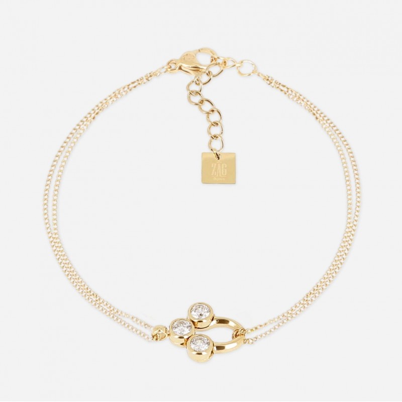 Bracelet ZAG BIJOUX en acier doré avec strass. Fermoir mousqueton. Longueur ajustable de 15cm à 18cm.