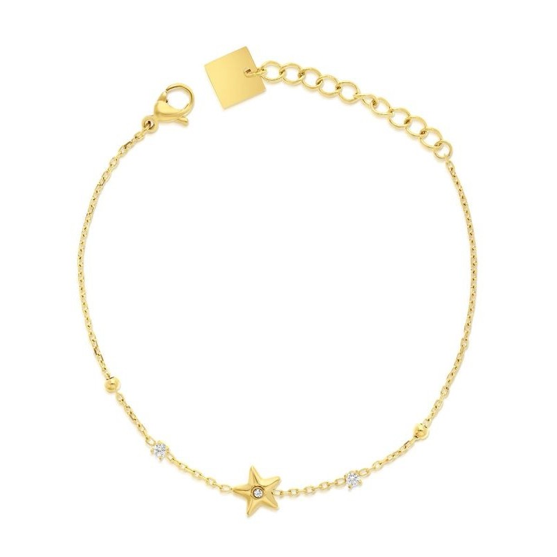 Bracelet ZAG BIJOUX en acier doré avec motif strass. Fermoir mousqueton. Longueur ajustable de 15cm à 18cm.