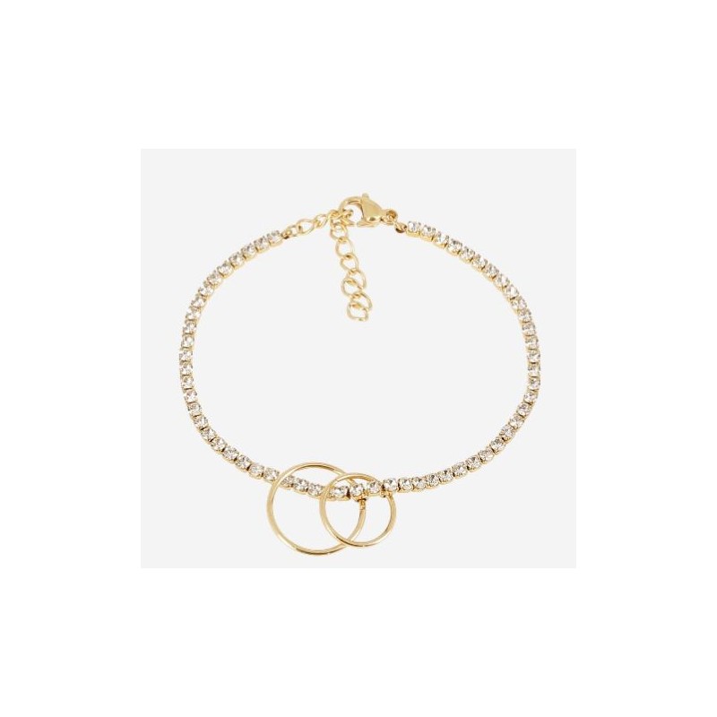 Bracelet ZAG BIJOUX en acier doré avec strass. Fermoir mousqueton. Longueur ajustable de 15cm à 18cm.