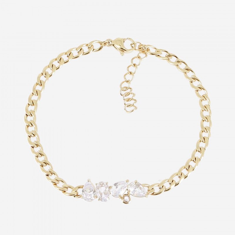 Bracelet ZAG BIJOUX en acier doré avec motif strass. Fermoir mousqueton. Longueur ajustable de 15cm à 18cm.