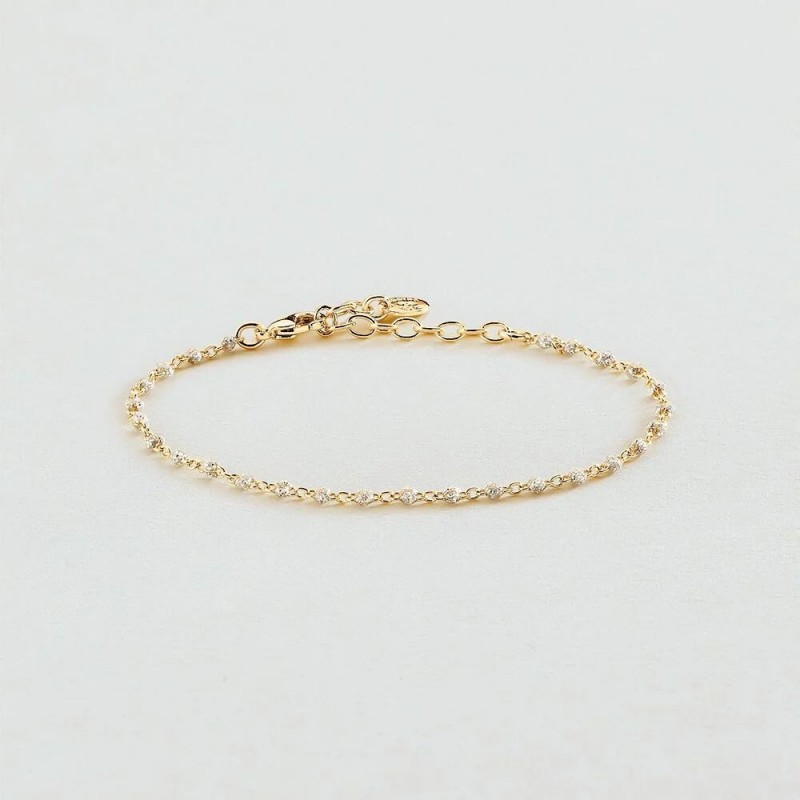 Bracelet AGATHA en acier doré avec perles émaillés. Fermoir mousqueton. Longueur ajustable de 16cm à 18cm.