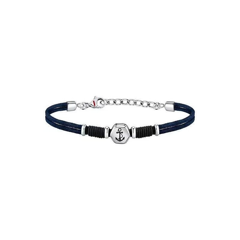 Bracelet SECTOR en acier avec motif ancre sur cordon bleu. Fermoir mousqueton. Longueur ajustable de 19cm à 21cm.