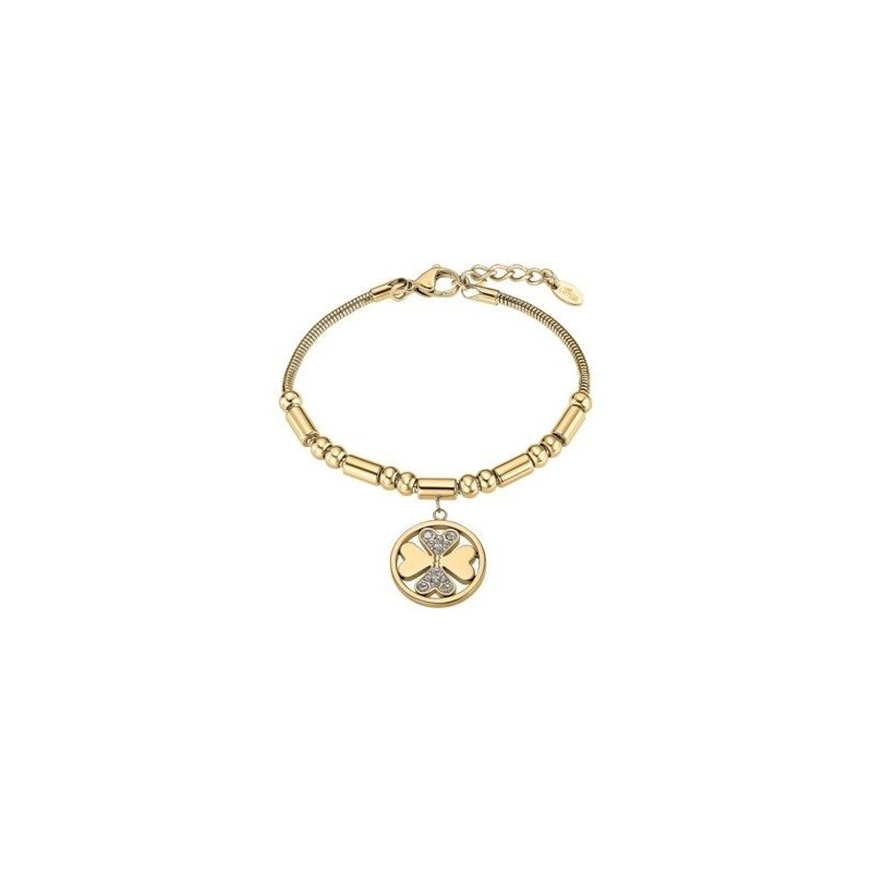 Bracelet LOTUS en acier doré avec pampille trefle. Fermoir mousqueton. Longueur ajustable de 17cm à 20cm.
