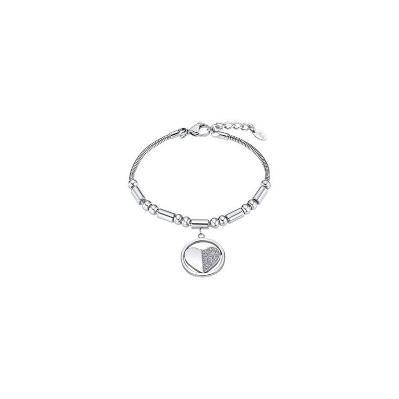 Bracelet LOTUS en acier avec pampille coeur. Fermoir mousqueton. Longueur ajustable de 17cm à 20cm.
