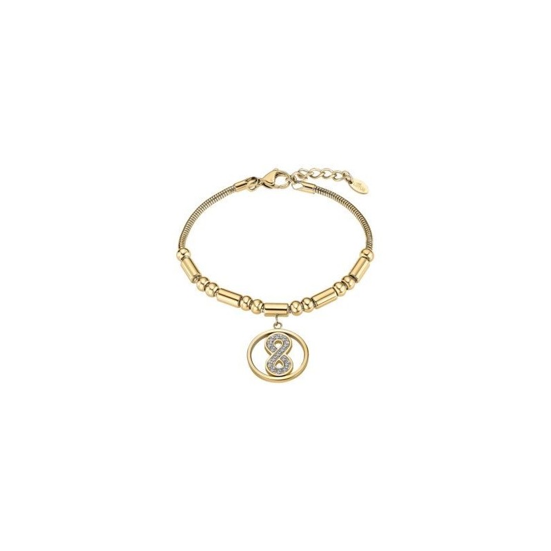 Bracelet LOTUS en acier doré avec pampille infini. Fermoir mousqueton. Longueur ajustable de 17cm à 20cm.