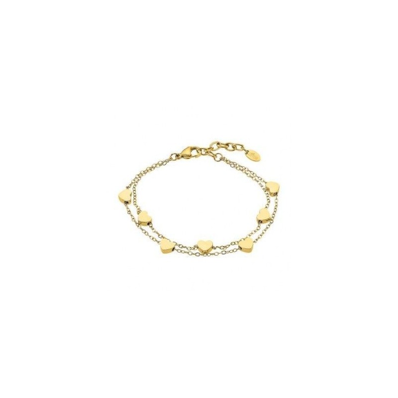 Bracelet LOTUS en acier doré avec petits coeurs. Fermoir mousqueton. Longueur ajustable de 17cm à 20cm.