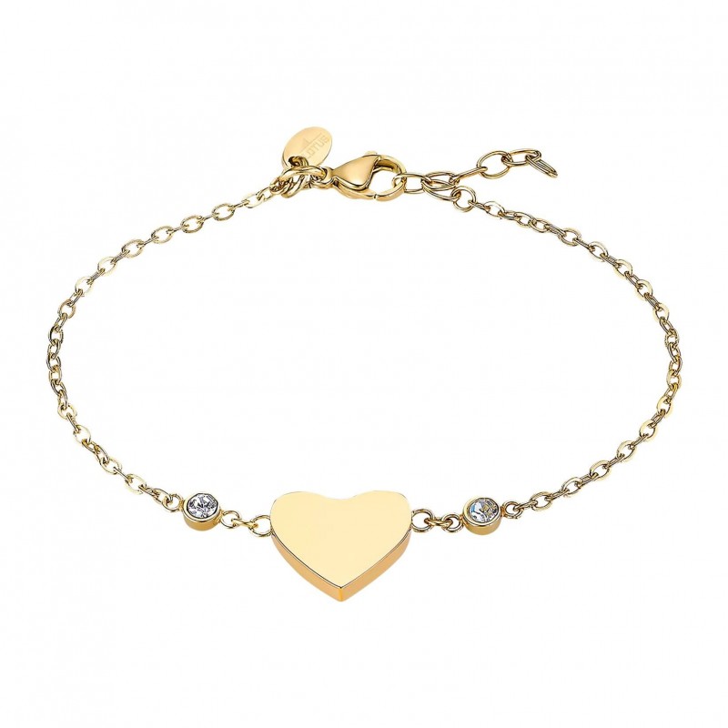 Bracelet LOTUS en acier doré avec coeur et strass. Fermoire mousqueton. Longueur ajustable de 17cm à 20cm.