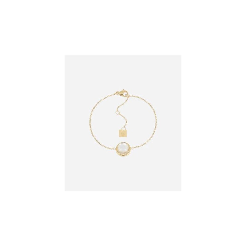 Bracelet ZAG BIJOUX en acier doré avec nacre et strass. Fermoir mousqueton. Longueur ajustable de 15cm à 18cm.