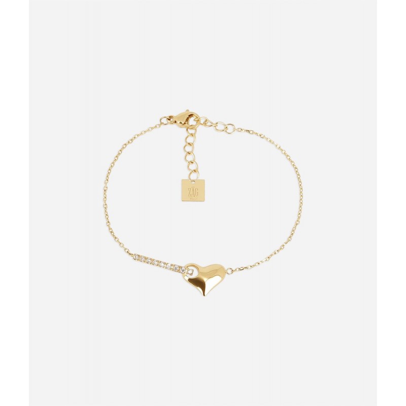 Bracelet ZAG BIJOUX en acier doré avec strass. Fermoir mousqueton. Longueur ajustable de 15cm à 18cm.