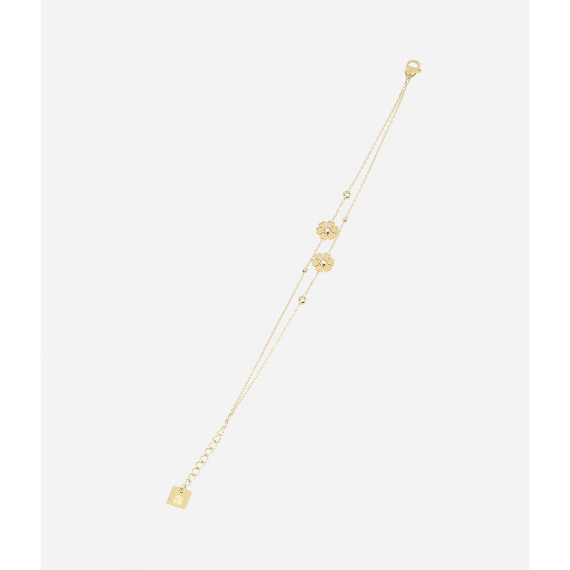 Bracelet ZAG BIJOUX en acier doré avec strass. Fermoir mousqueton. Longueur ajustable de 15cm à 18cm.