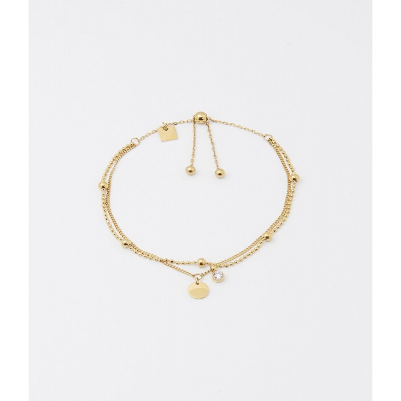 Bracelet ZAG BIJOUX en acier doré avec strass. Fermoire coulissant. Longueur ajustable de 13cm à 22cm.