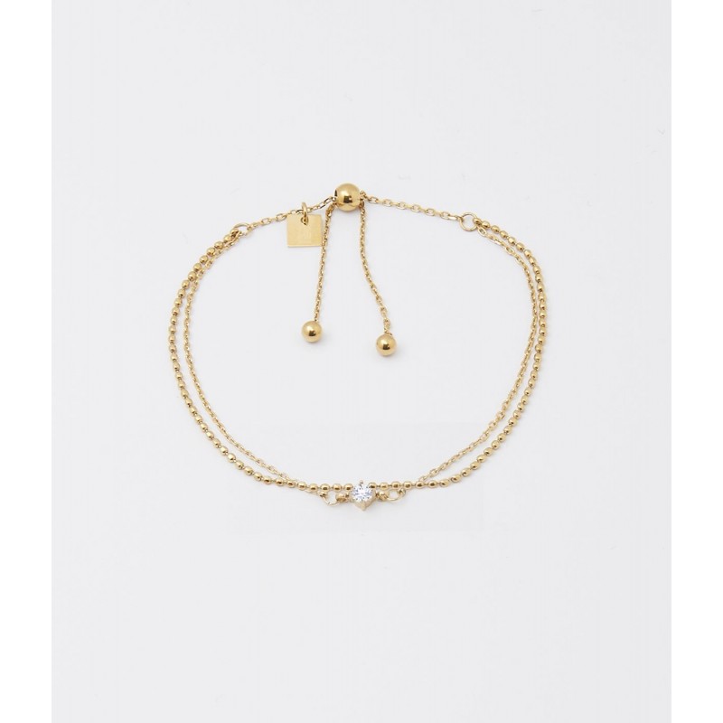Bracelet ZAG BIJOUX en acier doré avec strass. Fermoire coulissant. Longueur ajustable de 13cm à 22cm.
