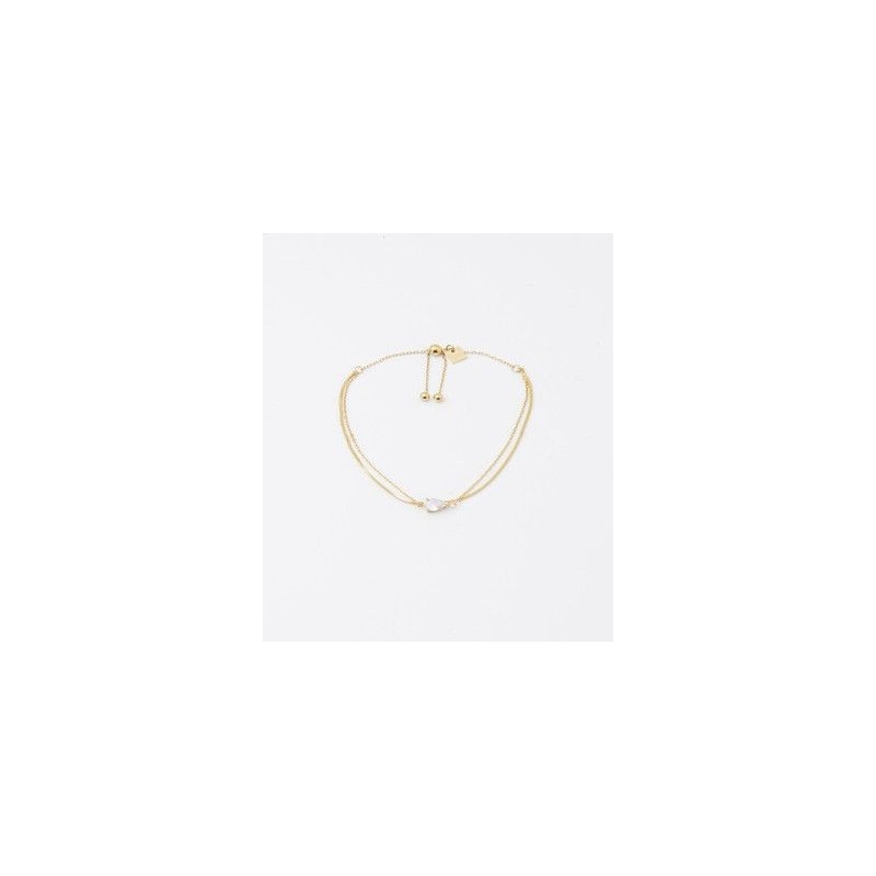Bracelet ZAG BIJOUX en acier doré avec strass. Fermoire coulissant. Longueur ajustable de 13cm à 22cm.