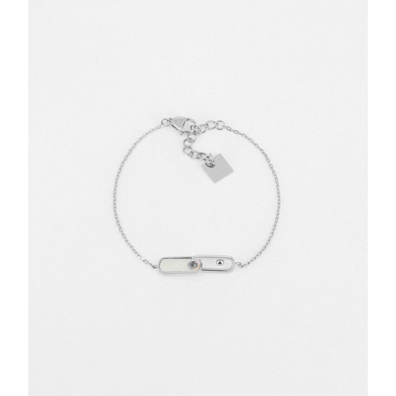 Bracelet ZAG BIJOUX en acier avec nacre. Fermoire mousqueton. Longueur ajustable de 15cm à 18cm.