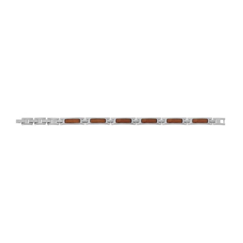 Bracelet en acier et bois. Double fermoir. Longueur ajustable de 19cm à 22cm.