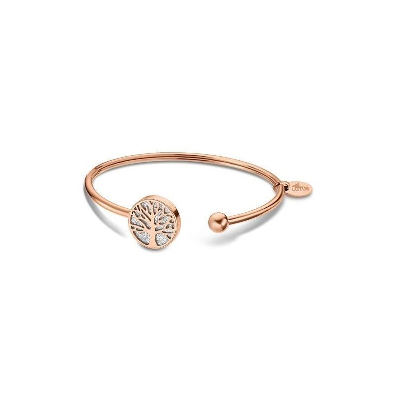 Bracelet LOTUS en acier rose rigide avec arbre de vie. Taille unique.