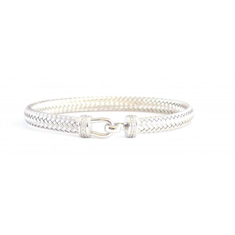 Bracelet VALENZI en argent 925/1000 rhodié avec fils tressé d'une largeur de 6 mm, fermoir crochet avec anneaux sertis d'oxydes de zirconium. Poids: 12g