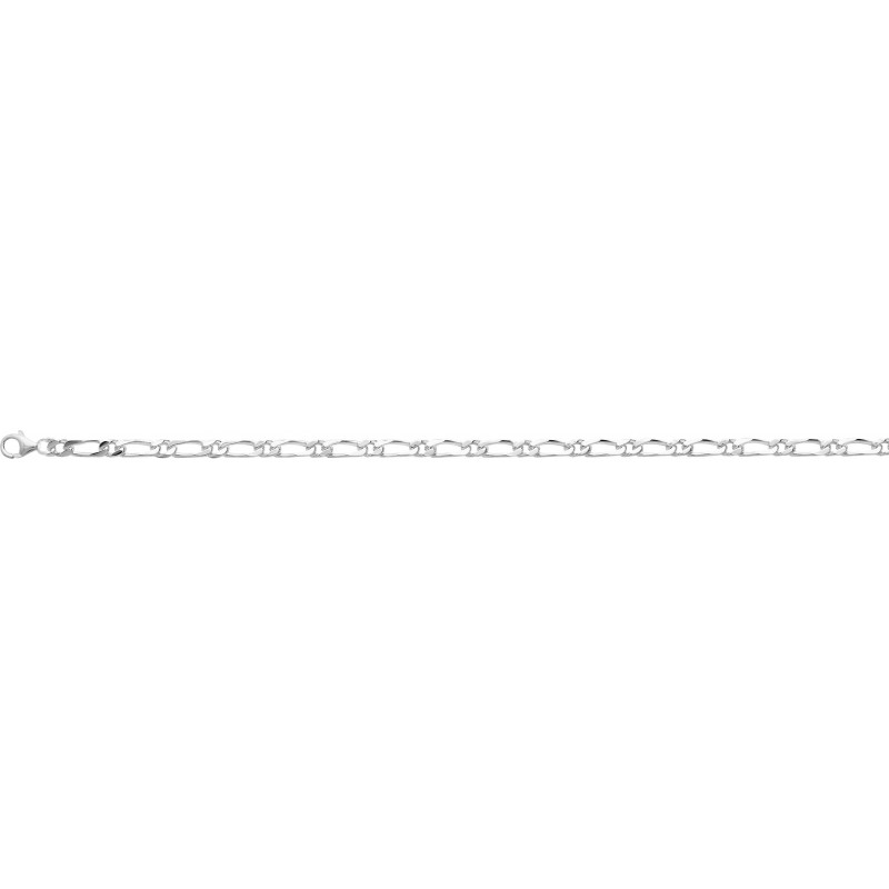 Bracelet en argent 925/1000 rhodié maille figaro 1+1 (4mm). Fermoir mousqueton. Longueur 19cm. Poids: 7.50g