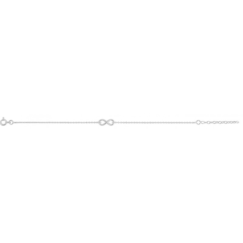 Bracelet en argent 925/1000 rhodié avec infini. Fermoir anneau ressort. Longueur ajustable de 16cm à 18cm. Poids: 1.55g