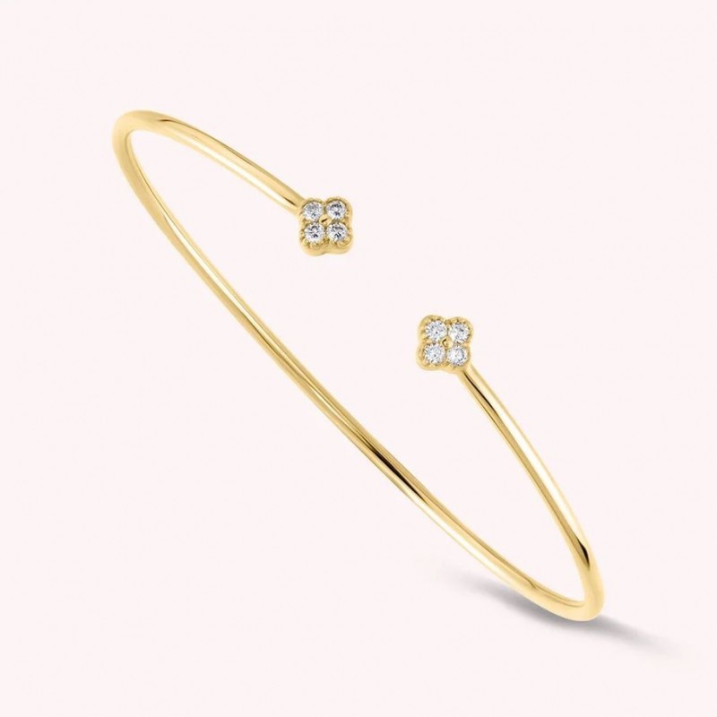 Bracelet AGATHA en argent 925/1000 et plaque or ouvert rigide sertis d'oxydes de zirconium. Taille ajustable.