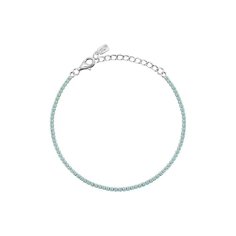 Bracelet MORELLATO en argent 925/1000 rhodié avec oxydes de zirconium bleus. Fermoir mousqueton. Longueur ajustable à 16cm et 19cm. Poids: 5g